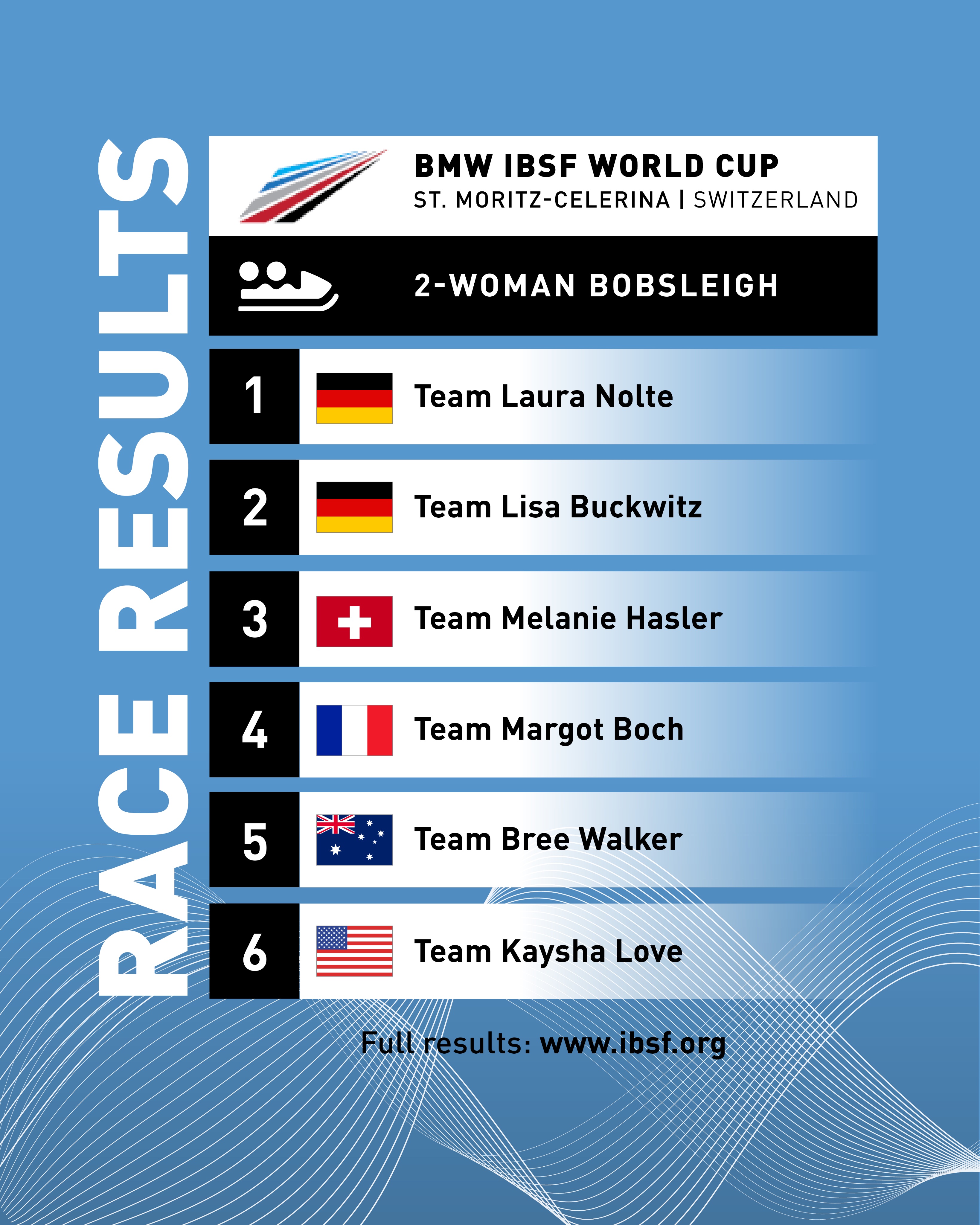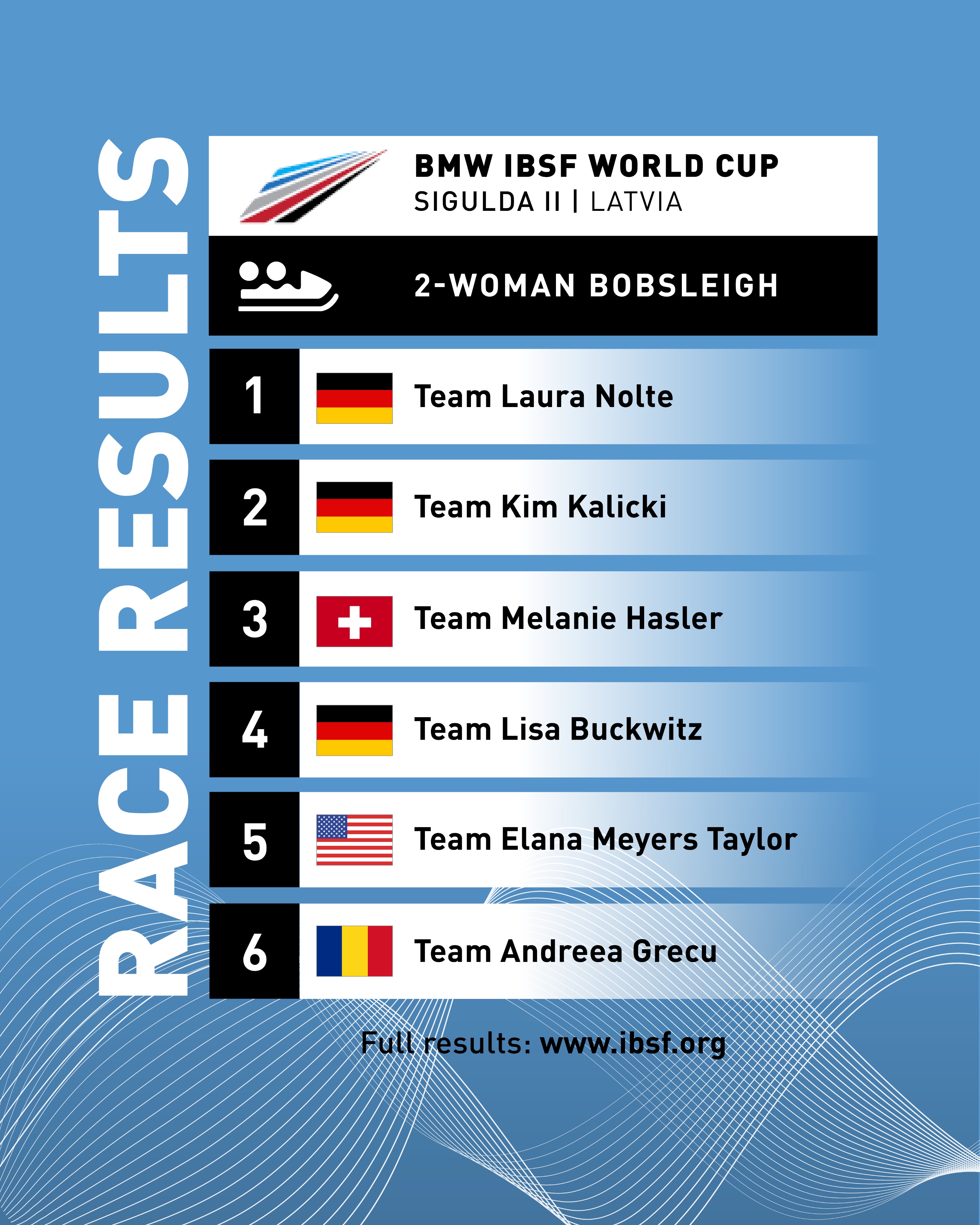 Source : www.facebook.comIBSF on X: “BMW IBSF World Cup 2 Woman Bobsleigh race results