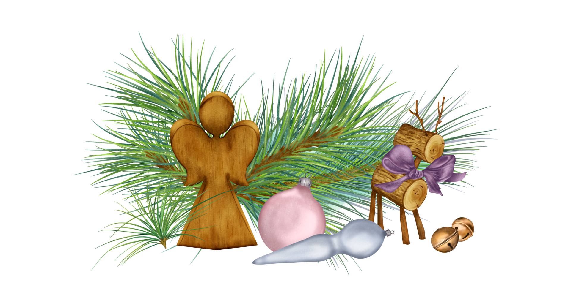 Source : s.click.aliexpress.comChristmas bells, conifer branch, wooden angel digital illustration